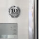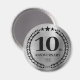 Silver brushed metallic style 10th-anniversary magnet with a business logo. Ideal for the employees or as promotional supplies for customers. Commemorative design with a laurel branch and stars. The logo can be changed for text by clicking the button to edit the design.