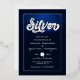 Cool blue and silver foil silver wedding anniversary party invite customizable to your event specifics. The foil effect on the "Silver" typography is not real.