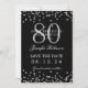 Silver 80th Birthday Save Date Details Black Invitation
