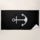 Silver Anchor on Black Decor Beach Towel