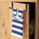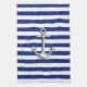 Silver Anchor on Navy Blue Stripes Kitchen Towel