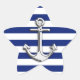 Silver Anchor on Navy Blue Stripes Star Sticker