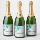 Silver and Aqua Rose Wedding Sparkling Wine Label