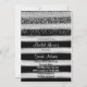 Bridal shower invitation with silver glitter design and black stripes watercolor background.