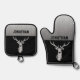 Silver and Black Deer Hunting Name - add you name to this sleek looking cooking set. Oven Mitts and Pot Holder for the outdoorsman who loves to cook in the kitchen, on the BBQ or grill.