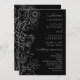 This elegant wedding program features a delicate floral ornamental design with flowers, birds and leaves on a silver and black background. The text combines handwritten script and serif fonts for a stylish and modern look. Perfect for a winter or autumn fall wedding.