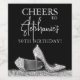 Elegant and Chic Modern Silver and Black Personalized Birthday Wine Bottle Custom Labels with Faux Glitter Silver High Heel Stiletto Shoes and custom name calligraphy script cursive in black and white with "Cheers" to birthday name's any age birthday party celebration!
