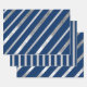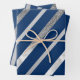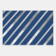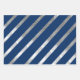 Silver and Blue Diagonal Stripes Pattern Wrapping Paper Sheet