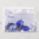Elegant silver Christmas and New Year gift tag flat card with blue Christmas baubles, white sparkling lights, shiny tinsel and a room for your text.