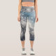 Silver and Blue Snowflake Winter Capri Leggings