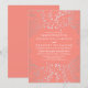 Baby's breath engagement party invitation / faux silver foil and coral.