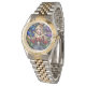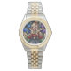 Favourite things is silver and gold. A women's watch with an illustrated plaid woman and iris's on the inside.