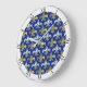 Silver and Gold Fleurs-de-lis on Blue Background Large Clock