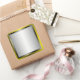 Silver metal plate chrome look surface printed background with a silver and gold frame border makes a cool and elegant sticker or seal for lots of usages. Easily personalize with your own text. Popular square sticker is shown.