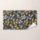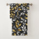 A Modern Silver And Gold Pattern Leaf Design On Black Bath Towel Set