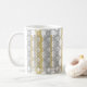 An elegant pattern of silver and gold geometric shapes, linked in a series of linear, lace streamers.