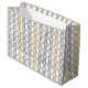 An elegant pattern of silver and gold geometric shapes, linked in a series of linear, lace streamers.