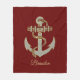 Silver and gold tones texture on a nautical boat anchor. The dark-red background colour is changeable. Optional monogram.