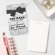 Handsome all occasion party accessory badge done in a silver and white marbled looking background, with graphics of a silver glittery look, across the top and bottom. Graphics of a black ribbon and bow, decorates the top of the badge. Black custom text is ready to personalize for your event. Great for birthday parties, Bar Mitzvahs, bachelor parties and more.