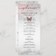 Looking for elegant program ideas for your wedding ceremony, quinceanera or other special celebration? Create your own beautiful pink butterfly wedding programs on this easy DIY template. The watercolor art by Raphaela Wilson depicts confetti and light pink monarch butterflies with a cool 3D effect over a rustic light grey stone texture with light sparkles. The wings of these whimsical garden creatures also have a unique subtle floral rose pattern. Add personalized text for: The Ceremony (Order of Service), who is in the Wedding Party, as well as a personalized Thank You message for your guests (this space can also be used for reception information). Should you need additional room for the bridesmaids, groomsmen, or other bridal party participants, you can change the text size. Feel free to also alter the script calligraphy and modern font selections should you prefer an alternate typography style. If you're looking for elegant wedding programs with pink butterflies for your big day, these personalized rack cards fit your plans beautifully! Even reword them for other special celebrations, such as a quinceanera / quince, sweet 16 birthday party, anniversary, etc. Enjoy! Category: watercolor wedding programs. Butterfly themed party colours: light pink, rose gold blush, light grey, dark grey, silver, black and white (w/ options of yellow champagne gold).