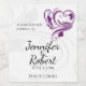 This beautiful and elegant design, called Silver and Purple Floral Scroll, has a white background with a purple border and a pale silver design on the background. In the upper right and lower left are purple floral scroll designs with the upper one creating a heart shape. This set has invitations, save the date cards, response cards, thank you cards, table number tent cards, envelope seals, wine labels, binders, return address labels and many more day-of wedding stationery pieces, favours, and gifts available. Use the envelope seal stickers for any of your DIY gifts - these are available in both large and small sizes! All elements are printed on our high quality products, they do not include any real gold, jewels, embossing, or other textile elements. All designs are copyright Noteable Expressions, Inc. All rights reserved.
