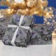 Silver and White flocked Christmas with soft purple lights make this a special wrapping paper