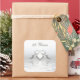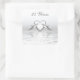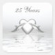 Square sticker with a unique silver-coloured scene of two dolphins and a silver heart on shining waters. Customizable text says "25 Years".