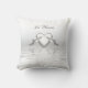 Unique silver-coloured throw pillow with my original 3d computer rendered image of two dolphins and a silver heart on shining waters. Customizable text says "25 Years".