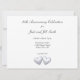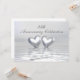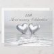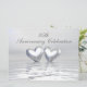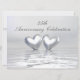 A silver-coloured 25th silver anniversary invitation with two silver hearts floating on water. Customize the sample text on the back with your own information for your event.