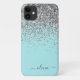 Silver and Teal Aqua Blue Faux Sparkle and Dripping Glitter Brushed Metal Monogram Name and Initial Phone. This makes the perfect sweet 16 birthday, wedding, bridal shower, anniversary, baby shower or bachelorette party gift for someone that loves glam luxury and chic styles.
