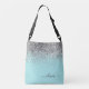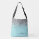 Silver Aqua Teal Blue Girly Glitter Monogram Crossbody Bag
