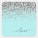 Silver Aqua Teal Blue Girly Glitter Monogram Square Sticker
