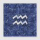 A silver chrome like Aquarius Zodiac symbol on a navy blue digital camouflage design print background. A modern urban racy design for a great custom birthday gift idea.