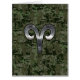 A silver Aries zodiac symbol on a green woodland style digital camouflage decor print background. A modern urban racy design for a great custom birthday gift idea.
