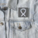 Awareness pin features the painting of a silver awareness ribbon on a custom button pendant. The silver awareness ribbon colour means support for Bell's Palsy, Children with Physical or Learning Disabilities, Disability Rights, Dyslexia, Elderly Abuse, Encephalitis, Parkinson's Disease, Schizophrenia, Brain Disorders and the Disabilities- Includes Traumatic Brain Injuries (TBI), and Stalking Awareness. Let this silver ribbon help bring awareness to these causes! Silver ribbon art lapel pins or buttons can be customized with personalized messages to make great cause buttons for fundraiser pendants for cancer or other causes, awareness pin gifts, or other special pendant events or awareness lapel pin for cause's occasions.