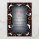 Halloween postcard party invitation featuring dark fantasy flowers and silver foil bats.