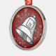 Great idea for science teachers! This Christmas bell has the periodic table symbol for silver, Ag. Silver snowflakes on a dark red background.