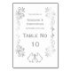 Silver coloured wedding table number bells design. You can customise this silver coloured wedding table number with your own wedding details. Should you require any help with customising then contact us through the link on this page. Bells scrollwork design personalised silver coloured wedding table number