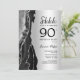 Black and silver agate surprise 90th birthday party invitation. Elegant modern design featuring rock tone agate marble geode background, faux glitter silver and typography script font. Trendy invite card perfect for a stylish women's bday celebration. Printed Zazzle invitations or instant download digital printable template.