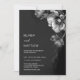 This elegant dark moody floral wedding invitation features silver gray flowers on a black background. Dark aesthetic wedding invitation.