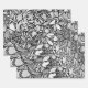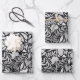 Silver Black Floral Leaves Illustration Pattern Wrapping Paper Sheet