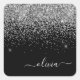 Silver Black Girly Glitter Sparkle Monogram Name Square Sticker
