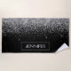 Silver Black Glitter Girly Monogram Name Beach Towel