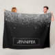 Silver Black Glitter Girly Monogram Name Fleece Blanket