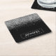 Silver Black Glitter Girly Monogram Name Square Paper Coaster