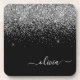 Silver Black Glitter Script Monogram Girly Name Coaster