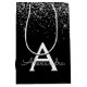 Silver Black Glitter & Sparkle Monogram Medium Gift Bag