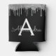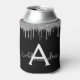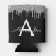 Silver Black Luxury Glitter Glam Monogram Name Can Cooler