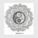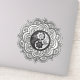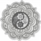 A detailed mandala featuring a yin-yang symbol in the center surrounded by floral patterns. The grayscale palette adds depth and contrast.
