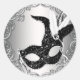 Silver black and white feather mask envelope seals and party favour labels. Mardi Gras mask envelope seals. These black and white masquerade party favour stickers are easily customized and you can add text and choose your own shape and size, simple choose the orange customize it button to begin customizing for your party or event.